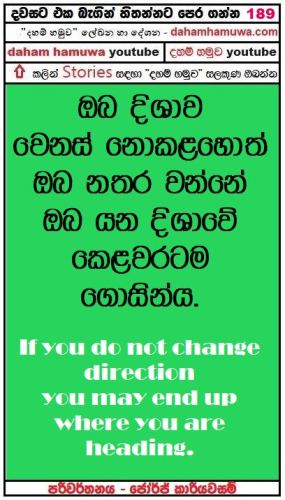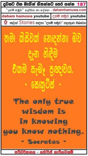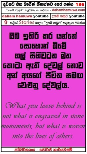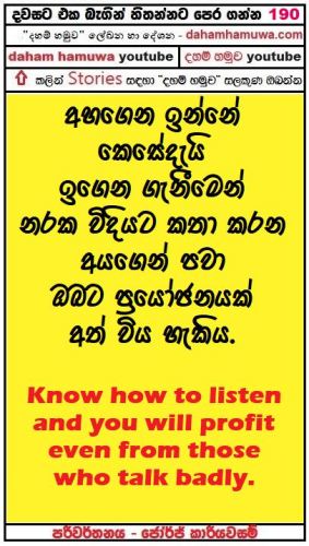 Dahamhamuwa quotes 186-190 දහම් හමුව වදන් Posted on September 23, 2022 by dahamhamuwa තවත් ගොන්නක් කියවීමට ඇති ආසාව දුරලා මේ ගොනුුුව හොඳින් හදවතේ තැන්පත් කර ගන්න. Share this: Click to share on X (Opens in new window) X Click to share on Facebook (Opens in new window) Facebook Like Loading... Related